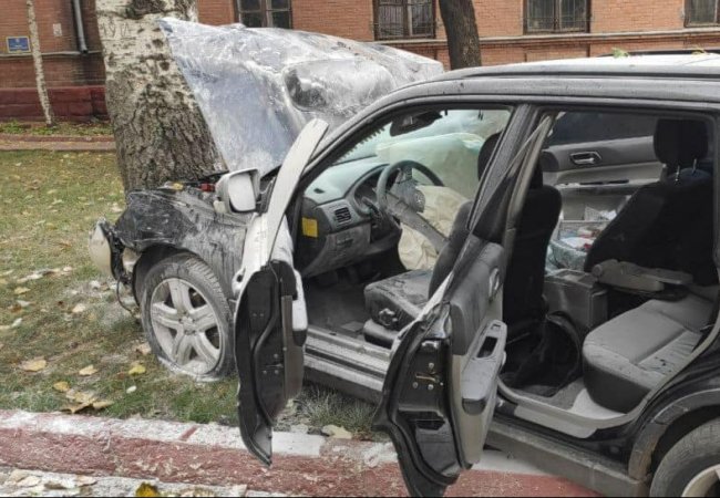 На перекритому перехресті вулиці Канатна і Італійського бульвару позашляховик протаранив поліцейське авто, після чого врізався у дерево на території військового навчального закладу.