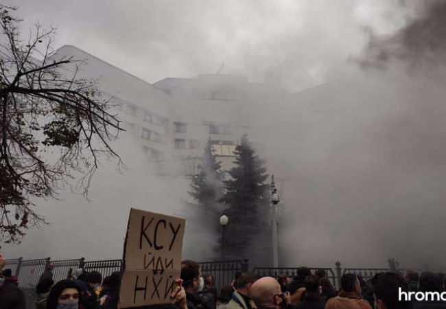 Біля Конституційного суду України – акція протесту, активісти застосували димові шашки. ВІДЕО