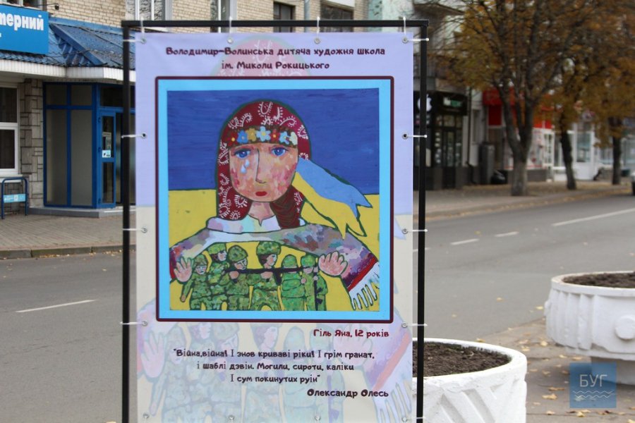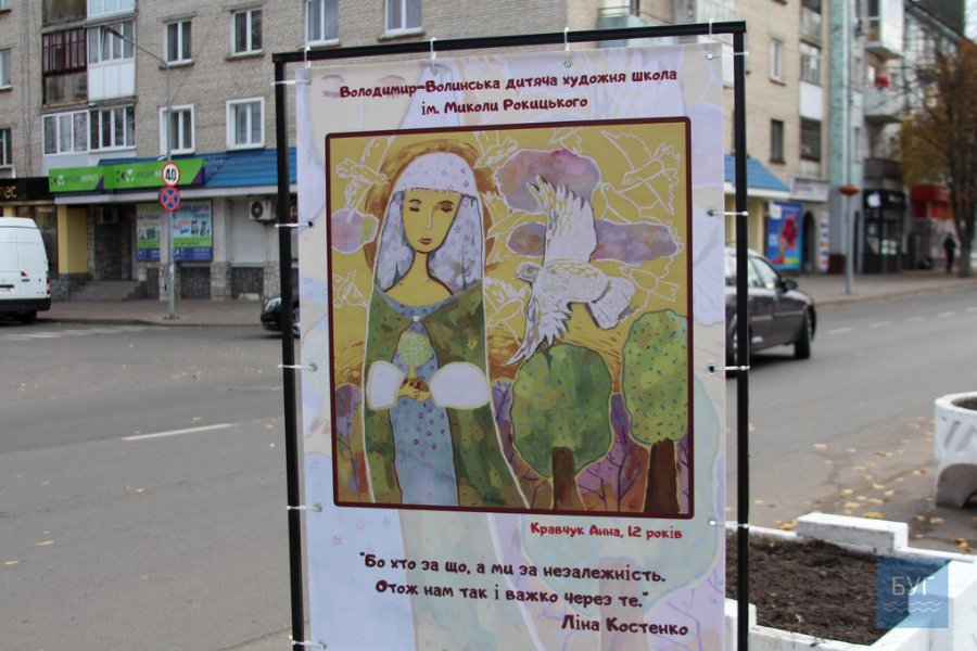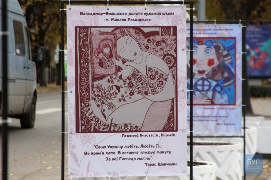 На Площі Героїв у Володимирі-Волинському презентували виставку робіт учнів дитячої художньої школи, які стали єдиними учасниками-дітьми всеукраїнського трієнале у місті Чернівці під назвою «preЧиста».