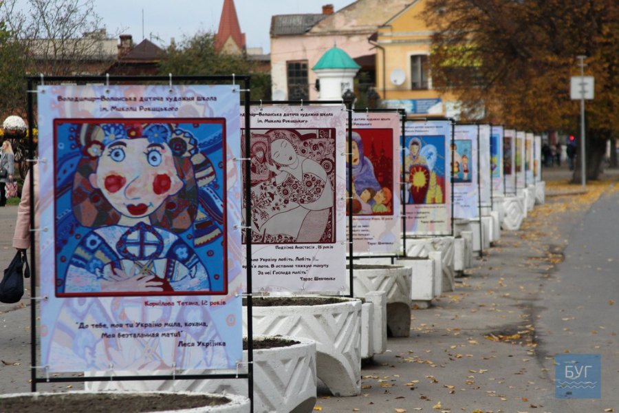 На площі у Володимирі-Волинському експонують художні роботи школярів. ФОТО