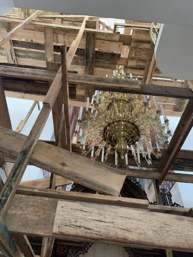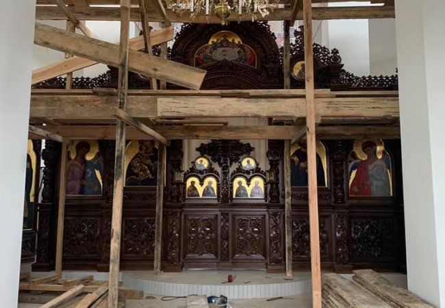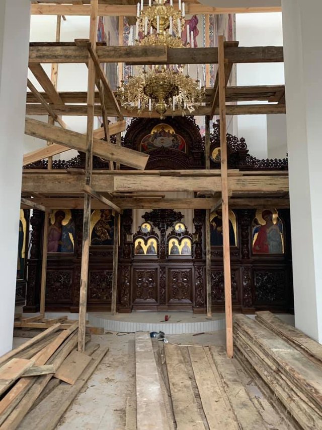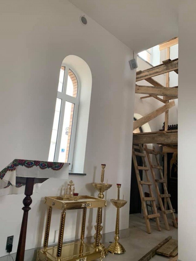 Наразі стіни храму все ще білі, проте поміж будівельних конструкцій уже можна розгледіти іконостас.