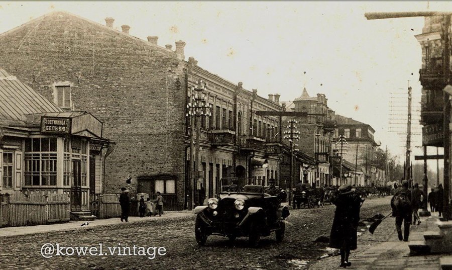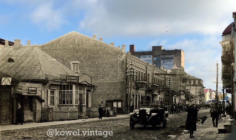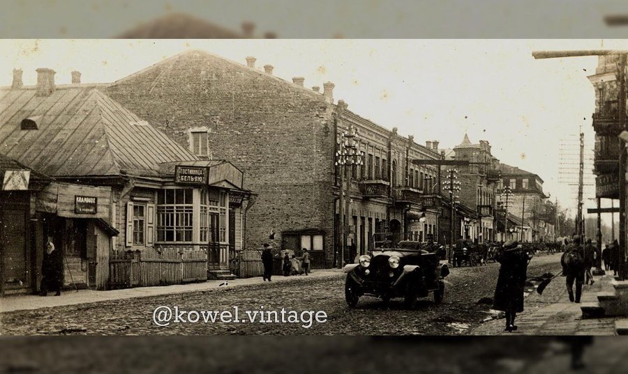 Далі - «Гостиница Бель’вю». Відразу за нею - будівлі, які вціліли і до сьогодні: готелі «Софія» та «Брістоль» (сучасна поліклініка).Відразу за ними - готель «Вікторія», який був зруйнований під час боїв у Ковелі в 1944-му році. Праворуч видніється аптека Фрідріксона.
