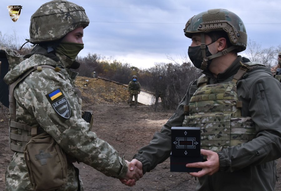 У межах робочого візиту на Луганщину президент України Володимир Зеленський відвідав підрозділи 14 окремої механізованої бригади імені князя Романа Великого, яка виконує завдання за призначенням в складі операції Об'єднаних сил.