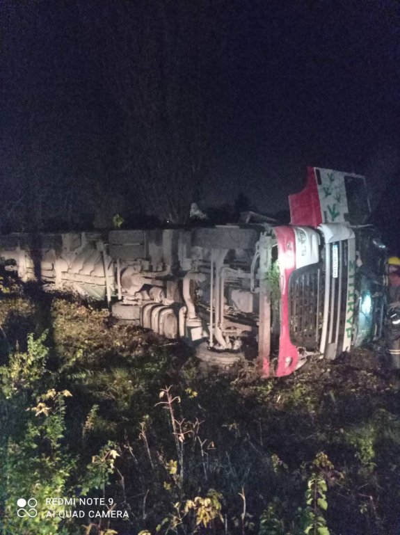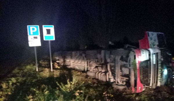 На місці події працює поліція та рятувальники. На скільки небезпечний був вантаж, чи була цистерна порожня - наразі невідомо.