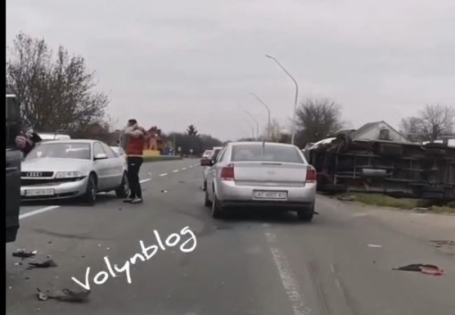 Біля Луцька – подвійна аварія, перекинувся бус. ВІДЕО. ОНОВЛЕНО