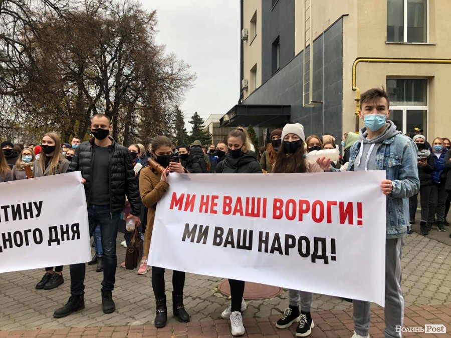 Луцькі мітингувальники прийшли страйкувати під стіни Головного управління Нацполіції області.