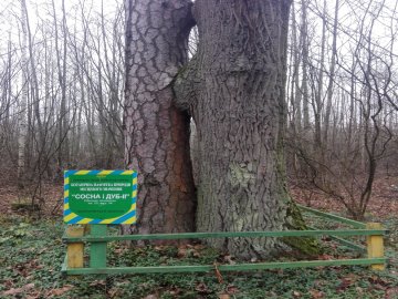 Ботанічні пам’ятки цікаві тим, що сосна і дуб зрослися між собою гілкою і ростуть так уже більше 100 років.