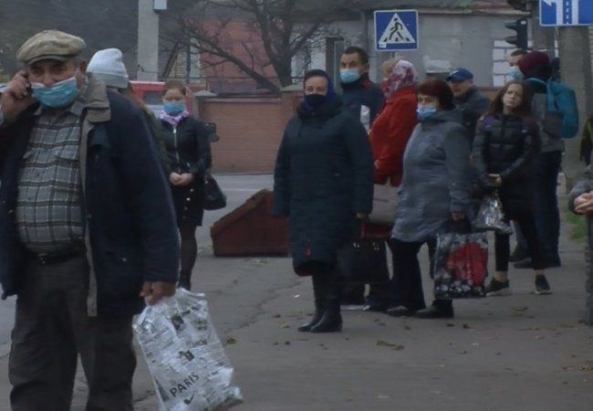 В години пік на зупинці біля ринку, на 33-ому мікрорайоні - черга. Нагадаємо, за постановою Кабміну від 22 липня, кількість людей у транспорті має не перевищувати кількість сидячих місць. Пасажирів у громадський транспорт пускають, лише якщо у салоні є вільні "сидячі".