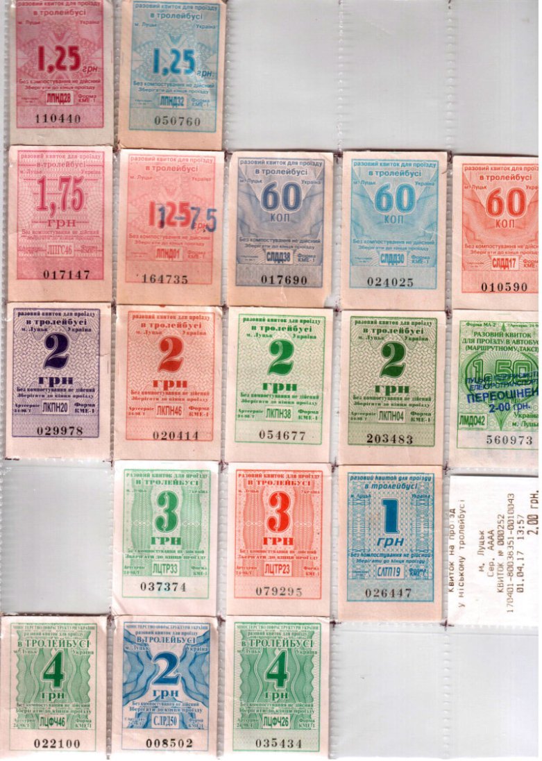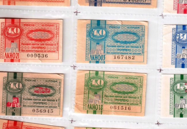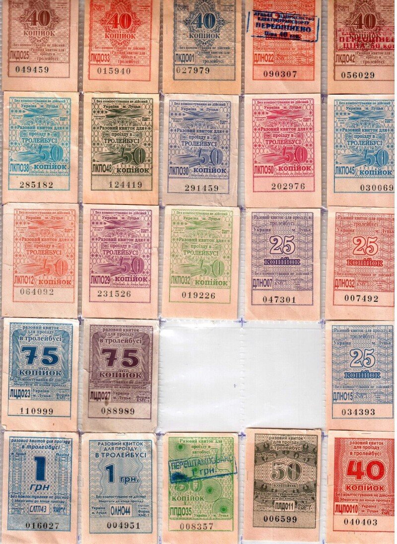 На світлинах можна розгледіти як квитки, які свого часу вартували лише 20 копійок, так і більш звичні лучанам, за які просили 4 гривні.