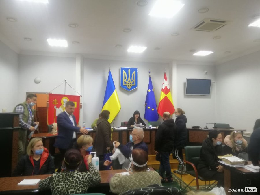 У приміщенні Луцької міської ради триває засідання Луцької міської територіальної виборчої комісії. Приблизно о 21:00 почали привозити протоколи з дільниць.
