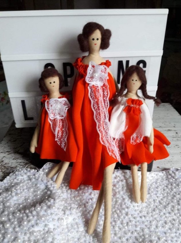 – Я шию уже сім років. Хоча, коли у 1994 році після школи ходила на курси шиття, на цьому все й закінчилось. Спочатку вчилась на товарознавця, потім здобувала вищу освіту за фахом «Дизайн інтер’єру» в ЛНТУ. Але потім у кабінеті своєї майстрині з манікюру я побачила інтер’єрну ляльку-тільду, яка мені дуже сподобалася. Замилувалася нею. А та дівчина й розповіла, що іграшку власноруч пошила її сестра. Я подумала: «А я чим гірша?». Прилетіла додому, мов на крилах! Таке вже натхнення у мене було, що й не передати. Сама знайшла викрійку, клаптики тканини. Ну й пошила тильду. І мені та лялька такою вже гарною здавалася! І відтоді я шию іграшки. На фото – перша лялька-тільда Руслани Цибуліної.