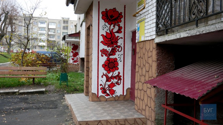 Як розповів БУГу голова ОСББ Петро Матрипула, задумка прикрасити входи до під’їздів виникла у нього та його дружини. Схожі малюнки вони побачили на зупинках дорогою до обласного центру.