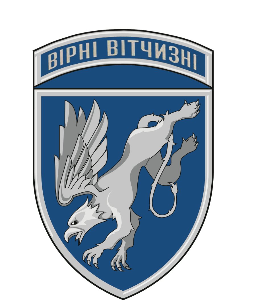 Центральним елементом нарукавного знаку є стилізоване зображення срібного пікуючого грифона.