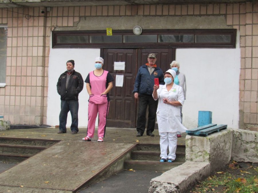 У Корецькому районі на Рівненщині музиканти влаштували флешмоб на підтримку медиків і зіграли декілька композицій під стінами місцевої лікарні.