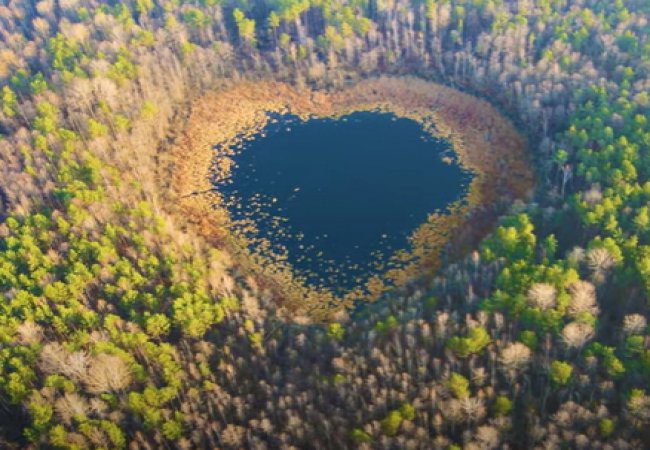 Озеро Закриннє, яке входить до Шацького національного природного парку і яке вражає своєю формою у вигляді серця, зняли з висоти пташиного польоту.