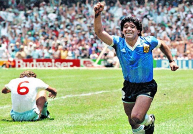 У матчі чвертьфіналу на Чемпіонаті світу з футболу Марадона забив гол у ворота збірної Англії, але цього не помітив суддя. Цей випадок відомий як «рука бога», адже після гри футболіст сказав: «Я не торкнувся м'яча, це була рука бога».