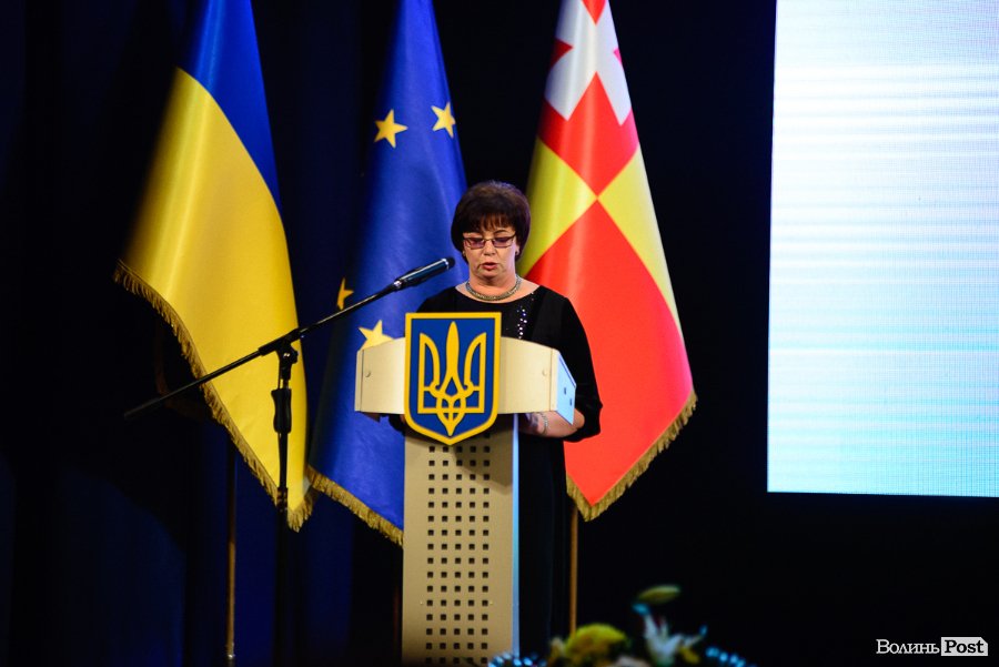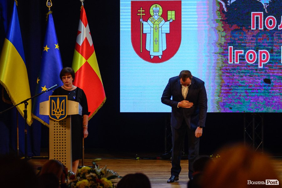 «Ви отримали високу довіру виборців. Сьогодні – головне не втратити цю довіру», - сказала Марія Парфенюк та під овації залу, який, до слова, аплодував стоячи, вручила переможцю виборів посвідчення та нагрудний знак Луцького міського голови.
