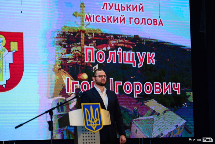 Під час історичного дійства у Палаці культури міста нові обранці луцької громади отримали посвідчення та нагрудні знаки, а Луцьк нарешті отримав офіційного міського голову – 32-річного представника партії «За Майбутнє» Ігоря Поліщука.