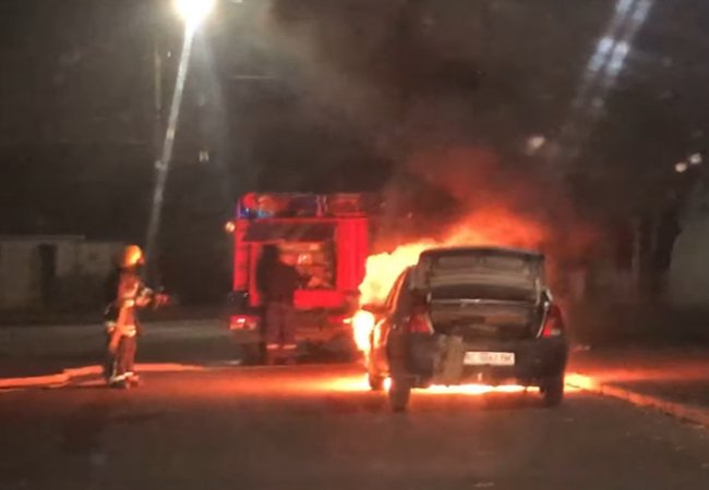 У Луцьку вночі згоріло таксі. ВІДЕО