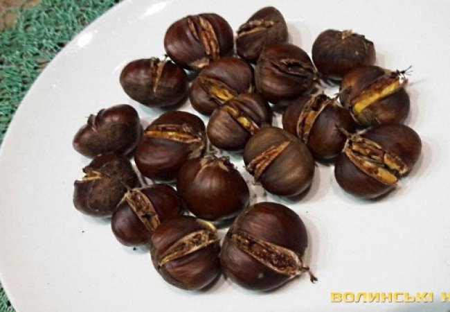 «Потім робимо поперечний надріз шкірки каштана з тієї сторони, що плоска. На деко їх потрібно викладати розрізом до верху. Випікати годину двадцять хвилин при температурі 120-150 градусів. Ні солити, ні перчити, ні приправляти не потрібно. Після готовності, каштан потрібно розламати навпіл, тоді шкірочка злазить і можна їсти смачну начинку. В Італії запивають цю страву вином», - ділиться рецептом запікання каштанів лучанка.
