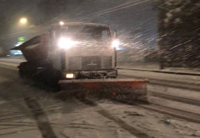 Перший виїзд снігоочисної та посипальної техніки. 6 одиниць працює на дорогах та 11 одиниць на тротуарах.