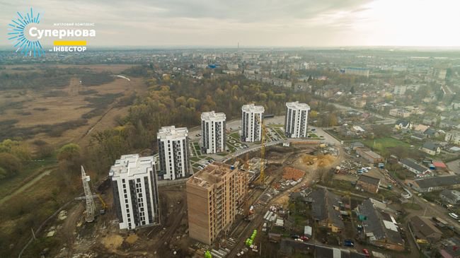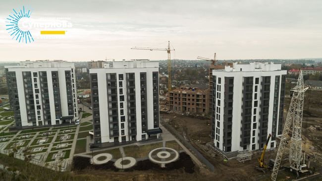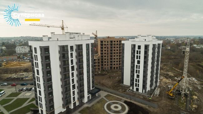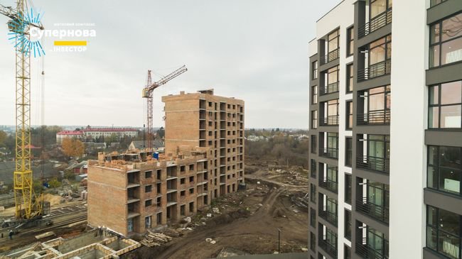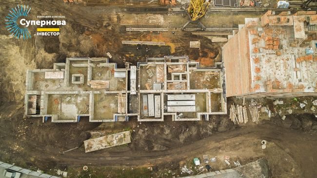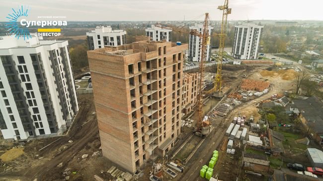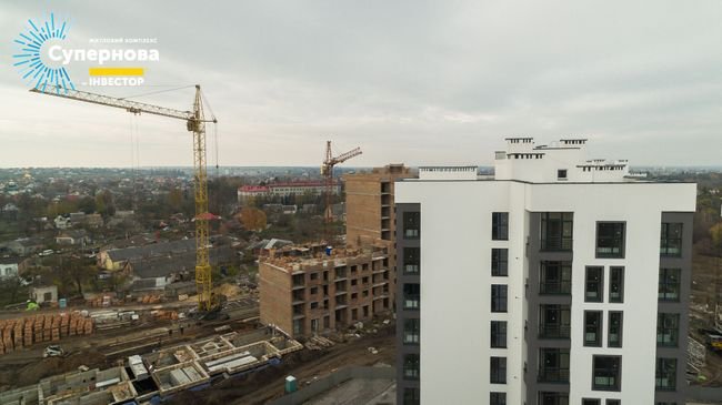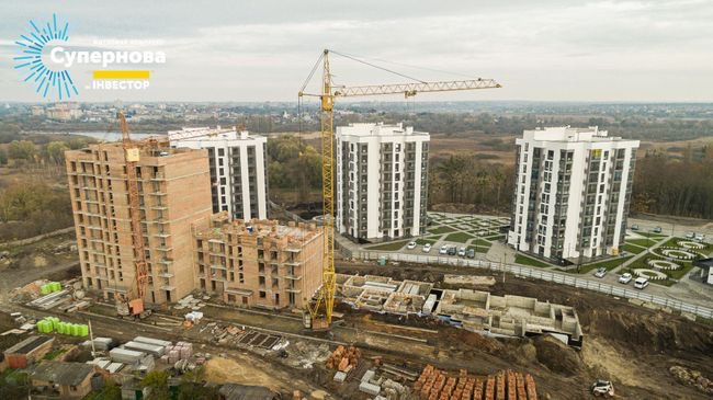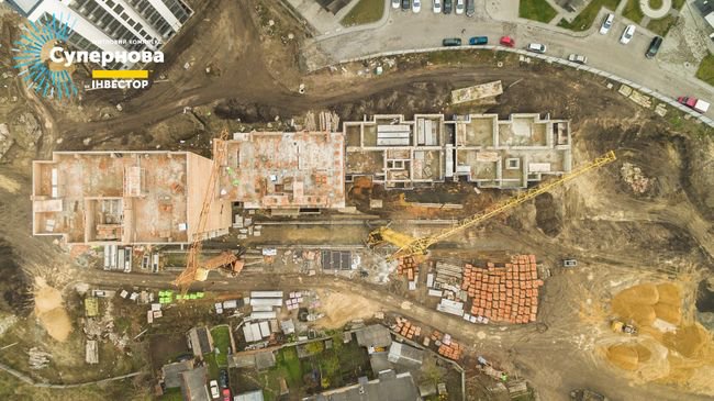 На будівельному майданчику ЖК «Супернова» активно тривають роботи. Уже повністю звели перший під'їзд у «великому» будинку та готують фундамент для п'ятого.