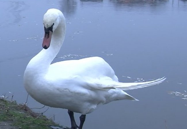 Люди опікуються птахом: на ставку у Луцьку оселився лебідь. ВІДЕО
