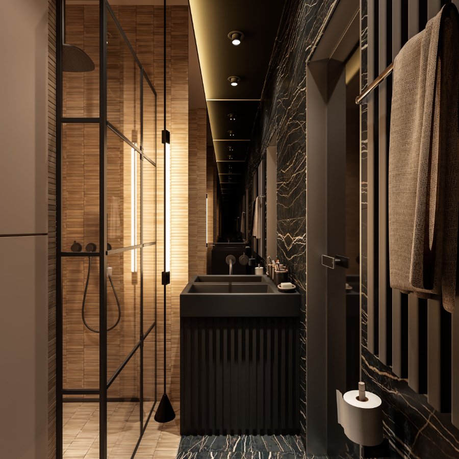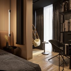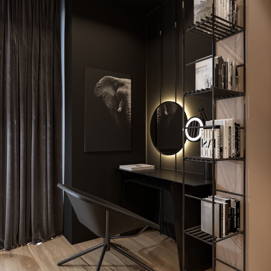 «Ми працюємо із натуральними кольорами та матеріалами, тому в інтер’єрі – бежевий, коричневий, природний колір дерева і землі. Темні відтінки поєднали зі світлими. Часто люди бояться темний кольорів стін, думають, що це візуально звузить простір, але при правильному використанні це навпаки додає глибини інтер’єру», – розповів співзасновник «isbelab», архітектор та дизайнер Олег Демчук.