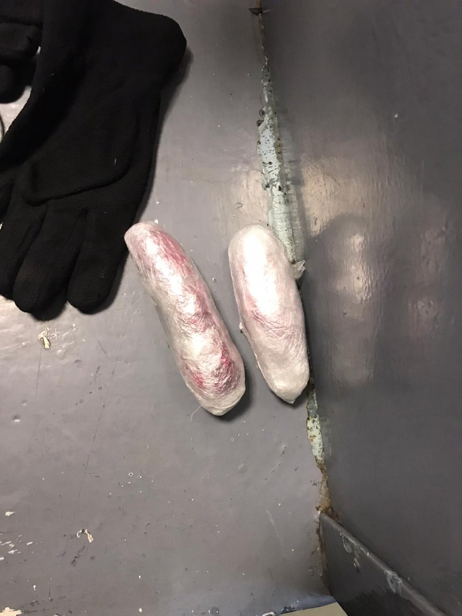 Провівши спільно з працівниками митниці особистий огляд подорожуючого, правоохоронці виявили два пакунки з речовиною сіро-зеленого кольору.