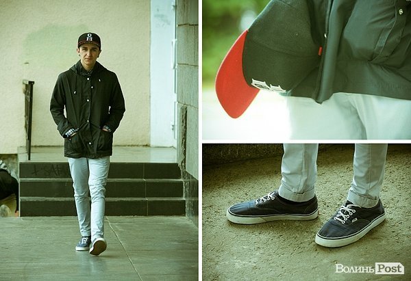 Трекер, кеди Vans і сережки в вухах серйозно заявляють про хіп-хоп культуру. Сьогодні мода дозволяє додавати в свій образ тільки один елемент стилю хіп-хоп, що дуже тішить. Адже в одязі цієї субкультури є класні елементи, але коли все це разом то виглядає не надто заворожуюче. Тому варто зауважити, що наш герой зробив правильний вибір, коли використав в одязі лише деякі деталі.