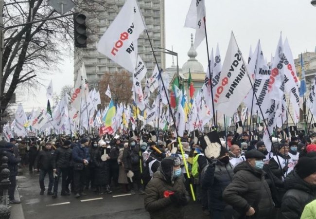 Біля будівлі Верховної Ради тисяча активістів руху "SaveФоп" вимагають скасування введення реєстраторів розрахункових операцій (РРО), яке відстрочили до 2022. Мітингувальники перекрили дорогу біля парламенту (по вулиці Михайла Грушевського).