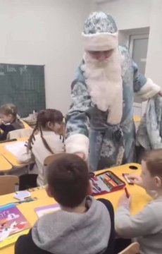 На Волині поліцейський офіцер громади у костюмі святого Миколая вітає дітей зі святами.