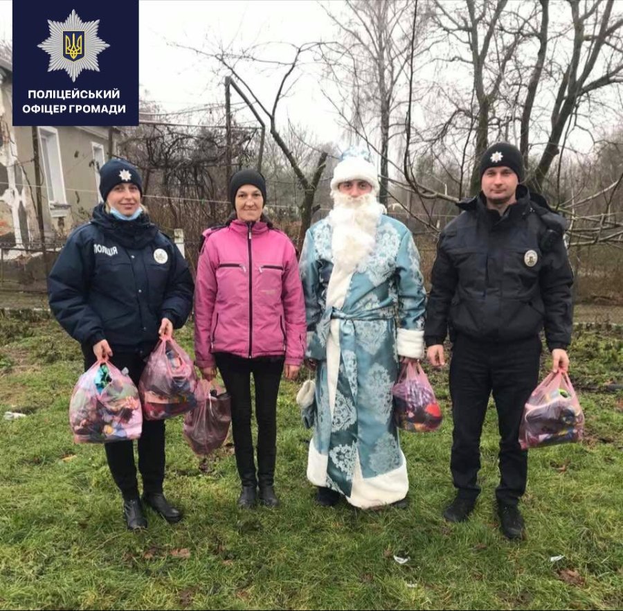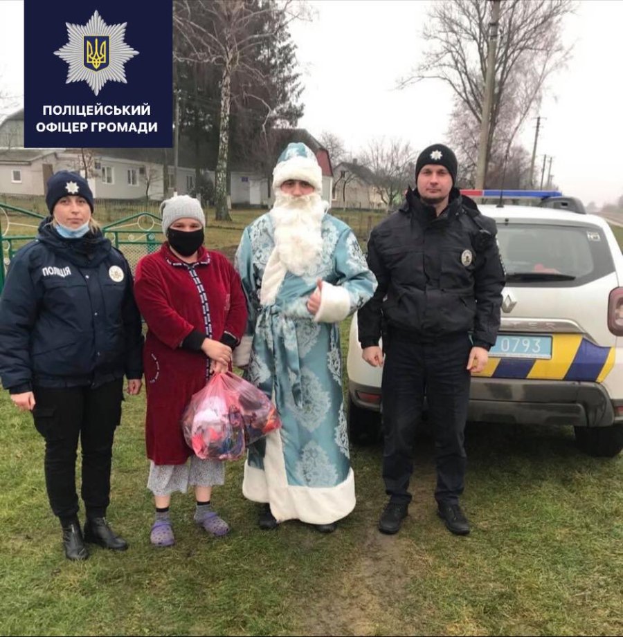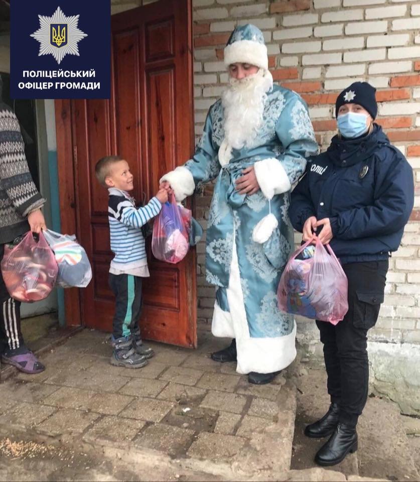 Поліцейський офіцер Зимнівської_ОТГ лейтенант поліції Орест Бабій разом із колегами дарує дітворі святковий настрій.