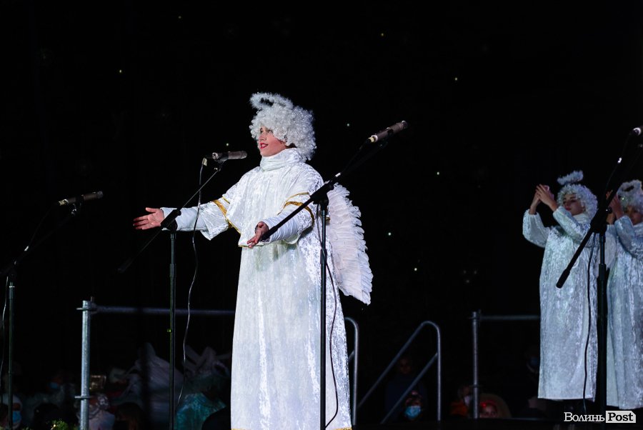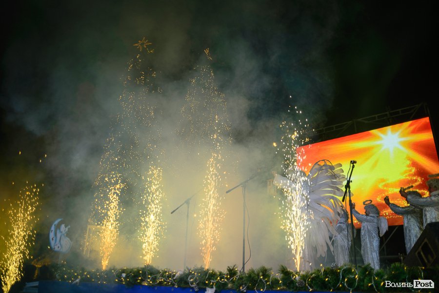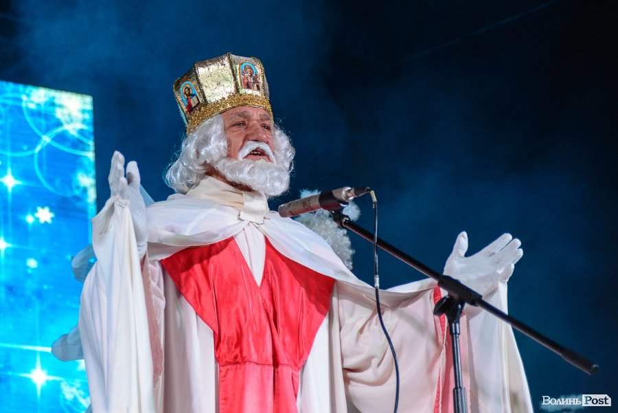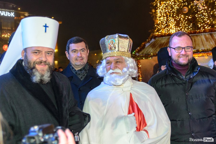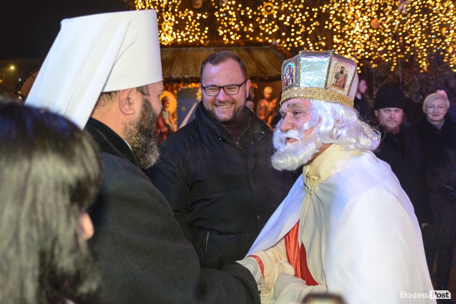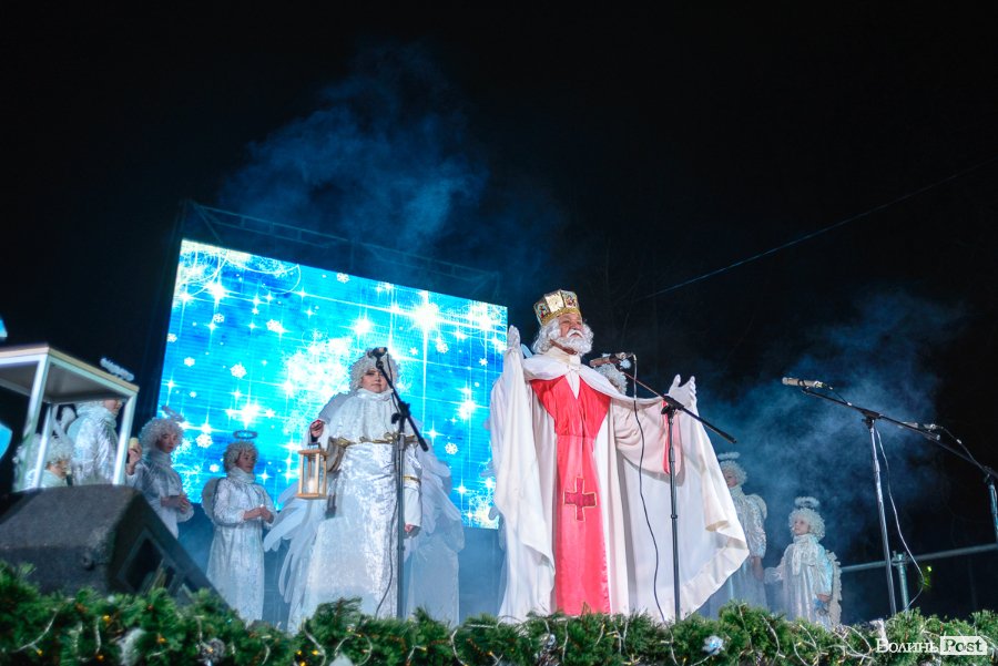 «Нехай же світяться вони цією благодатюю», – сказав Миколай і тріо луцьких красунь осяяли площу, гості ж свята фотографували новорічні ялинки та слухали вітання з наступаючими святами.