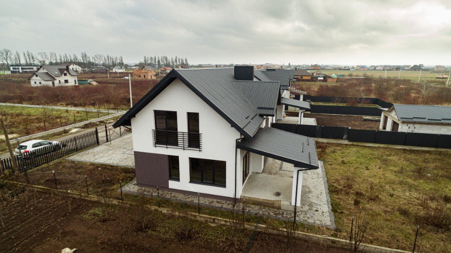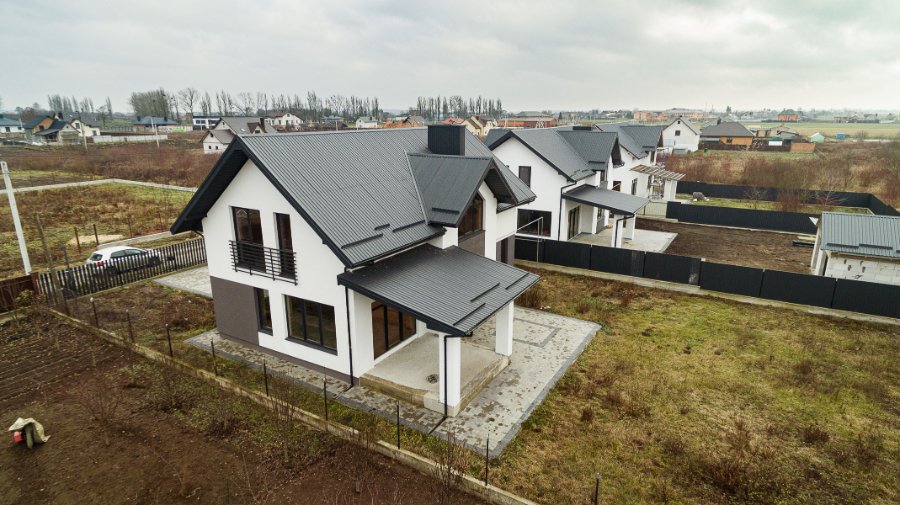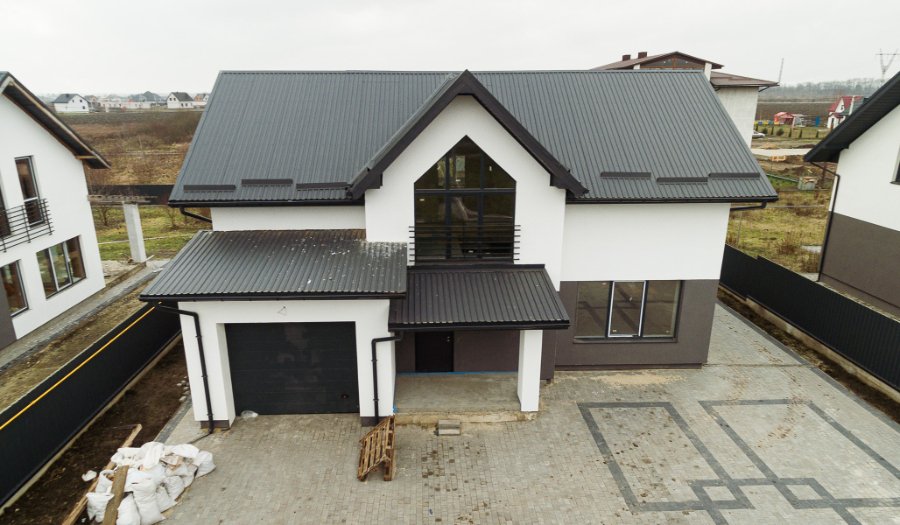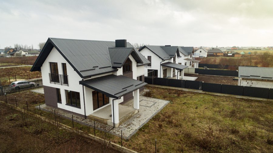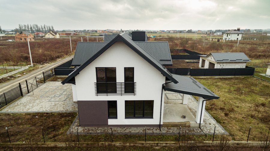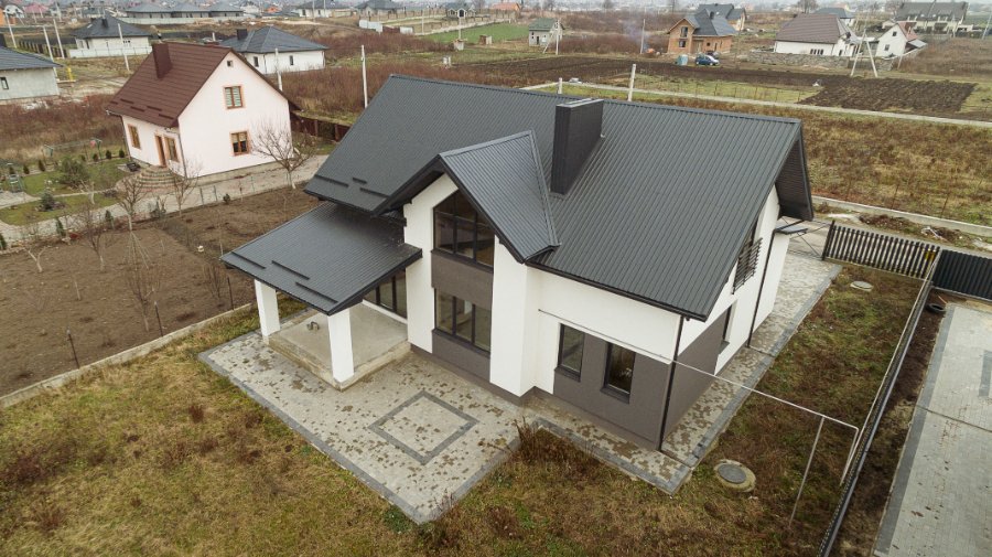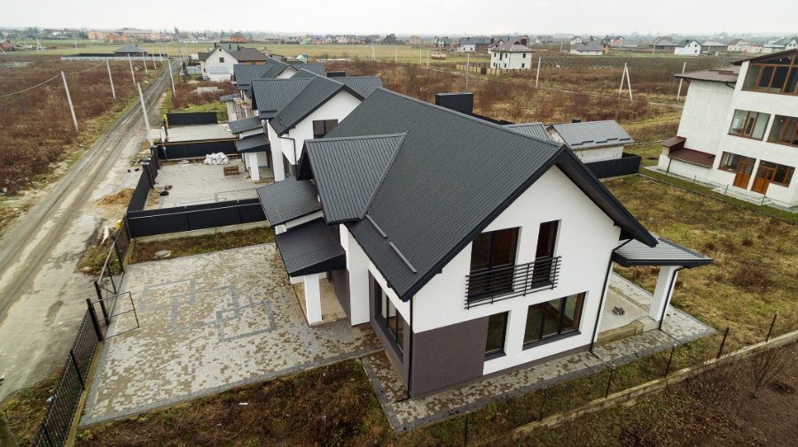 Один із таких варіантів – новозбудований котедж у Боратині. Він має сучасне планування, два поверхи, вбудований гараж і власну ділянку 8,5 соток. Площа – 175,94 м2. Ціна – 69 000 $, є можливість відтермінування.