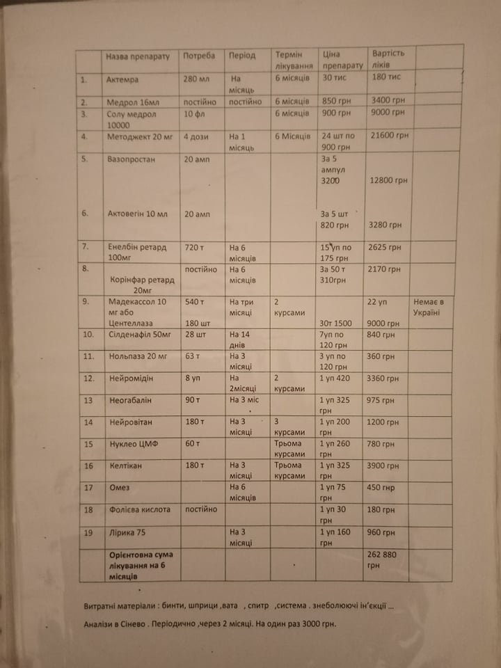 За новим призначенням лікарі рекомендують застосувати нові високовартісні препарати, серед яких - рідкісний препарат “АКТЕМРА”. На сьогодні орієнтовна сума лікування Луцика - 290 тисяч гривень.