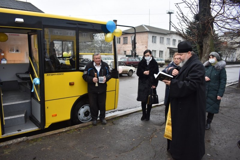 Священник освятив шкільний автобус та подарував ікону водієві автобуса та побажав щасливої дороги.