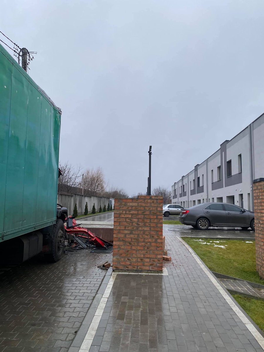 «Була бетонна арка, щоб не їхали в двір вантажні авто. Тепер нема. Водій живий», – йдеться у дописі.
