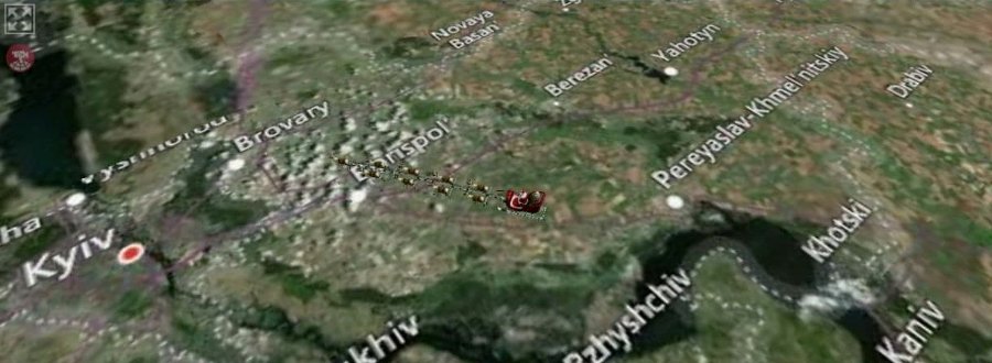 До України Санта потрапив з Іраку. Спершу казковий герой пролетів біля окупованого Криму о 21:09, о 21:11 відвідав Херсонську, Дніпропетровську та Кіровоградську області та дістався Черкаської області, а о 21:12 до Київської.