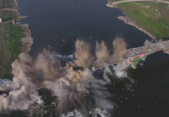 Оскільки новий міст недавно ввели в експлуатацію, то провели контрольований вибух старої споруди - мосту не стало буквально за 10 секунд.