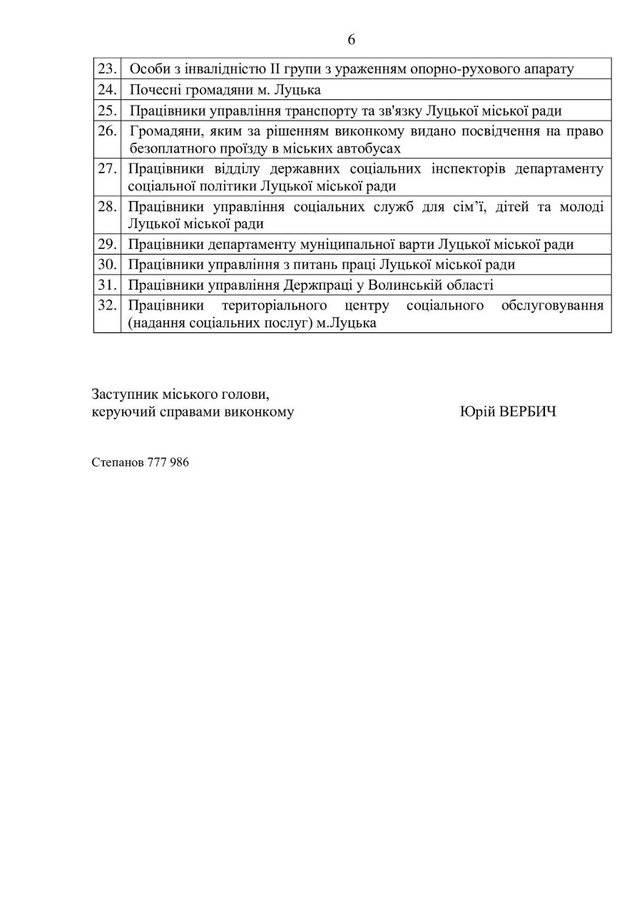 В міських автобусах можуть не платити 32 категорії, зокрема ветерани ОУН-УПА, діти з інвалідністю віком від 6 до 18 років, учасники ліквідації наслідків аварії на Чорнобильській АЕС, віднесені до другої категорії, постраждалі учасники Революції Гідності та інші.
