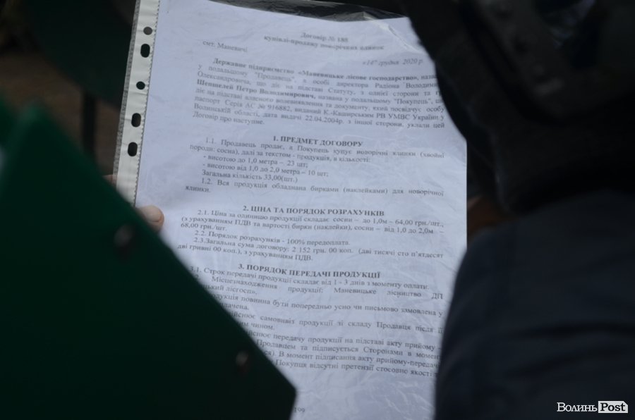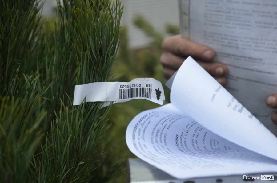 «В Луцьку маю по 2-3, а бувало й 4 точки, 120 квадратів зараз лише біля «Глобуса». Стаю я зазвичай із 17-го грудня продавати ялинки, то з того часу реалізовую близько 150-200 ялинок і трохи більше сосен, є ще блакитні, напівблакитні ялини, зв’язані з гілок, але там вже трохи інакша схема», – чоловік показує, що має усі документи на руках і кількість бирок відповідає кількості дерев. Щоправда, екоінспектори мали претензії стосовно того, що більшість із хвойних – нечіповані на момент продажу, одну таку ялину чоловік навіть намагався продати під час рейду на очах у інспекторів, але йому завадили.