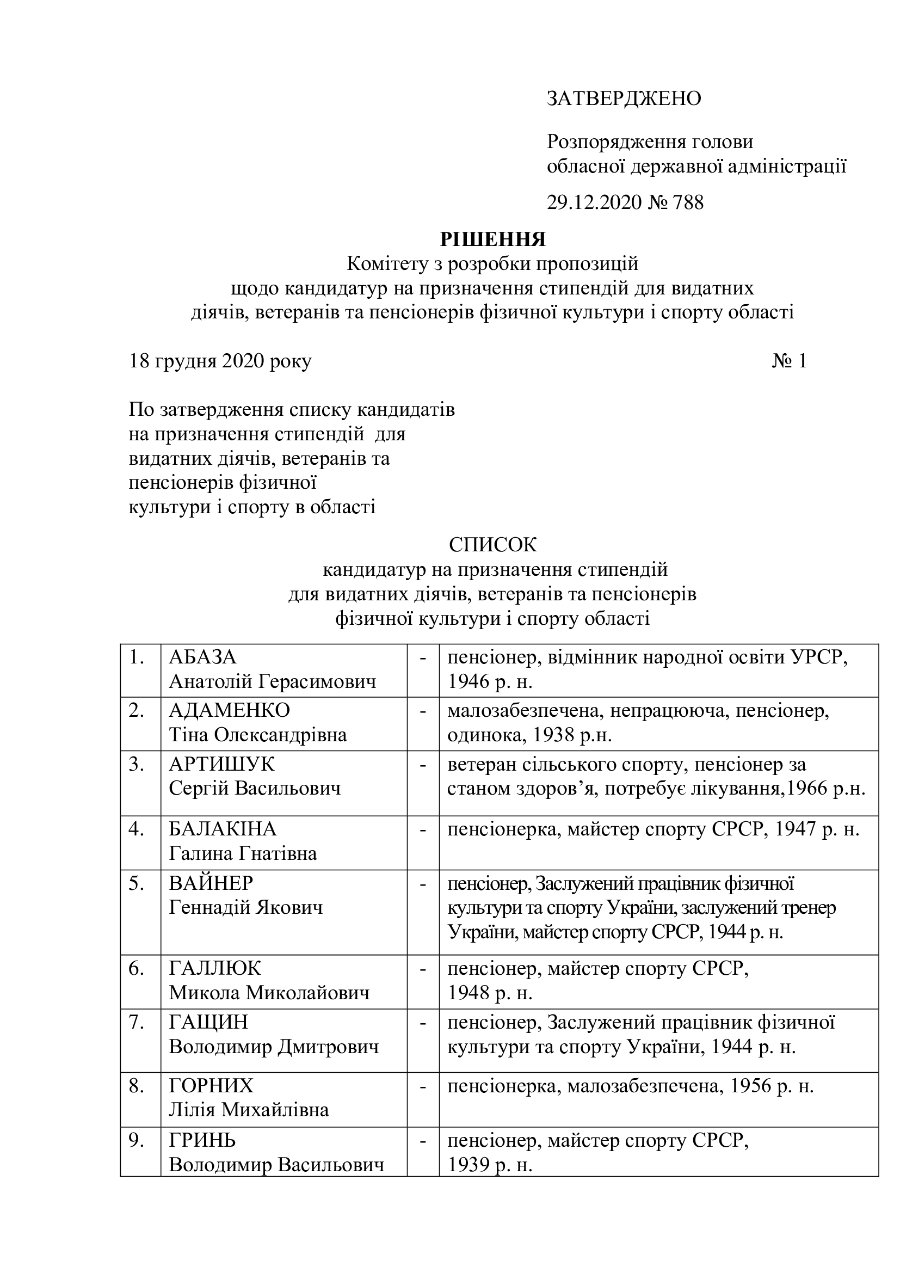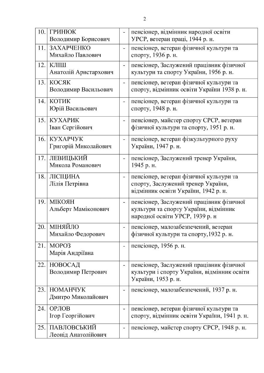Серед тих, хто отримуватиме стипендію - Заслужений працівник фізичної культури та спорту України, заслужений тренер України, майстер спорту СРСР Геннадій Вайнер, Заслужений працівник фізичної культури та спорту України, заслужений тренер України, майстер спорту СРСР Володимир Гащин, ветеран фізичної культури та спорту, відмінник освіти України Володимир Косяк та інші.