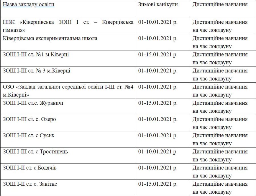Майже усі школи Ківерцівської міської ради будуть працювати після зимових канікул перейдуть (на час локдауну) на дистанційну форму навчання.