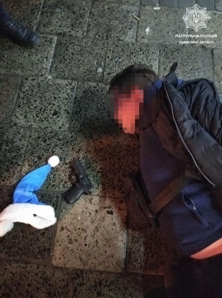 У Львові патрульні вночі, виходячи з магазину, почули постріли та побачили чоловіка з предметом, схожим на пістолет Форт-17Р у руках.