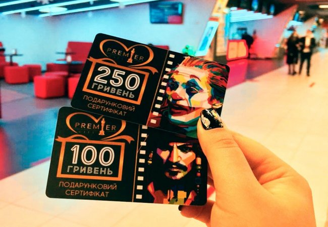 Пропонують сертифікати номіналом 100 та 250 гривень, які можна придбати у касі кінотеатру. Ними можна оплатити квитки на сеанси та смаколики в буфеті.