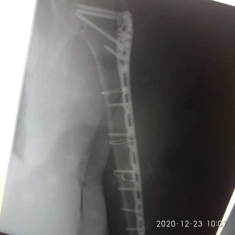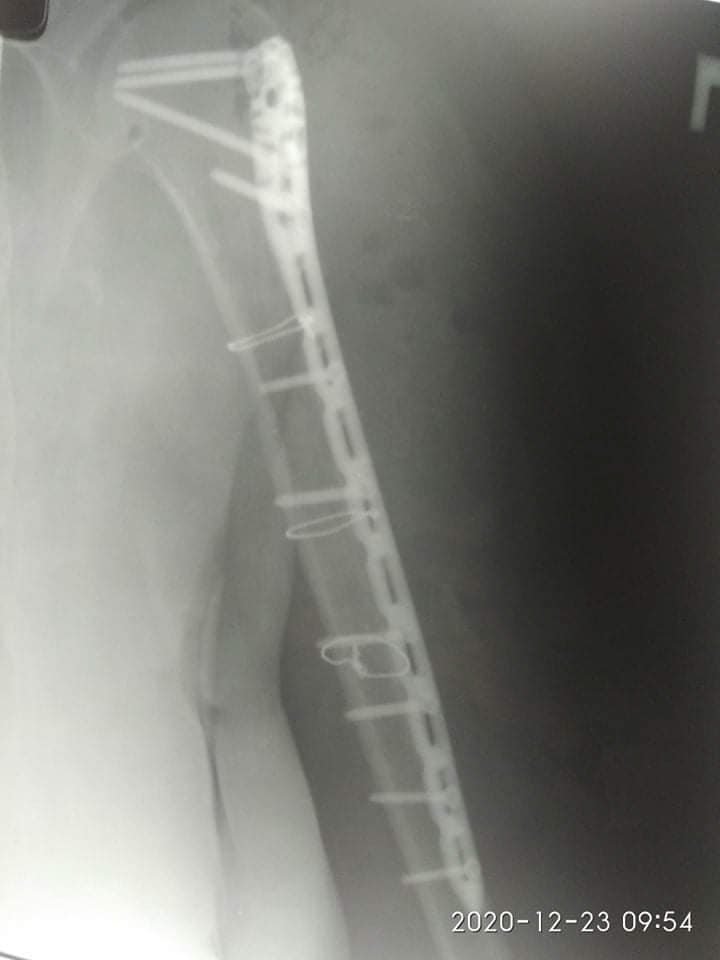 21 грудня їй провели 4-ьох годинну операцію - остеометалосинтез правої плечової кістки за допомогою LCP проксимальної Philos пластини та гвинтів.