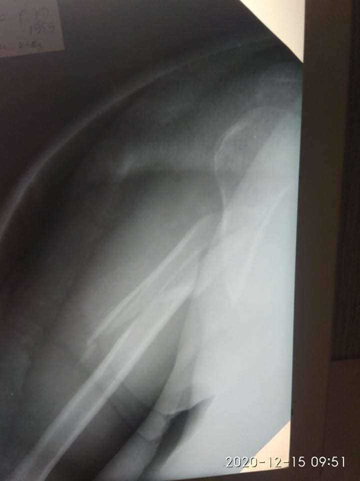 Діагноз: Закритий багатовідламковий перелом діафізу правої плечової кістки", - йдеться в дописі.