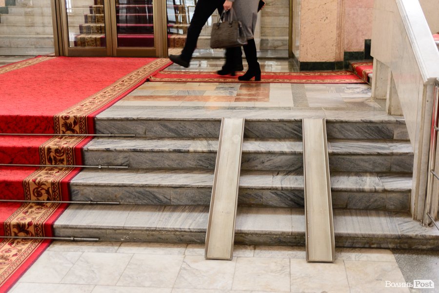 У приміщенні Волинської обласної ради встановили пандус на сходах до сесійної зали.