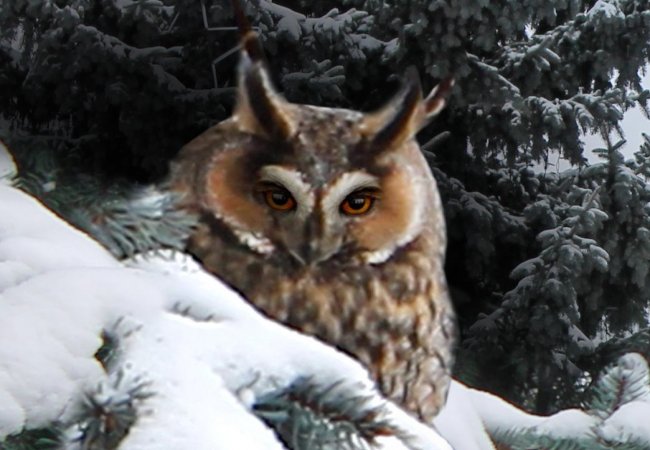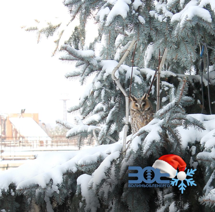 "Сьогодні одна із сов прилаштувалася для денного сну на новорічній ялинці – її і вдалося сфотографувати!